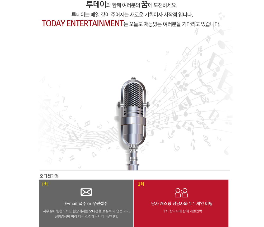 (주)투데이엔터테인먼트는 기업/단체 및 개인의 정보 수집 및 이용 등 처리에 있어 아래의 사항을 관계법령에 따라 고지하고 안내해 드립니다.